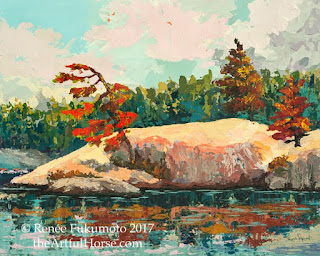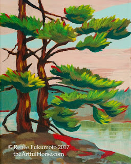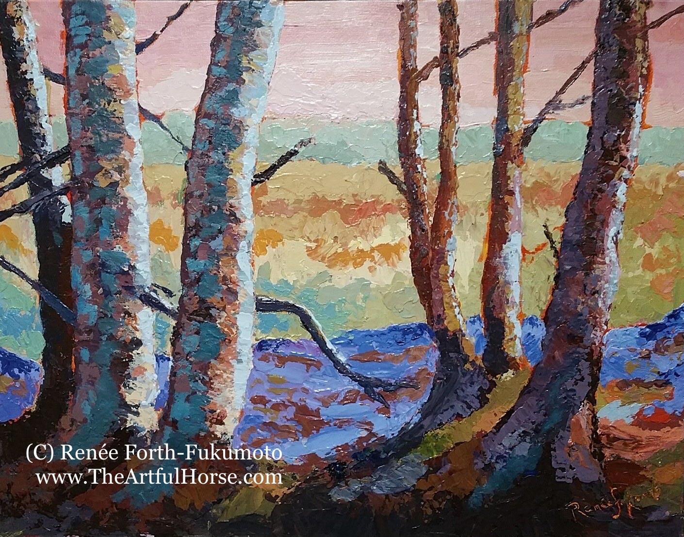 | Moody Birches, 11"x14", acrylic on canvas, Rattlesnake Point, (c) Renee Fukumoto, |