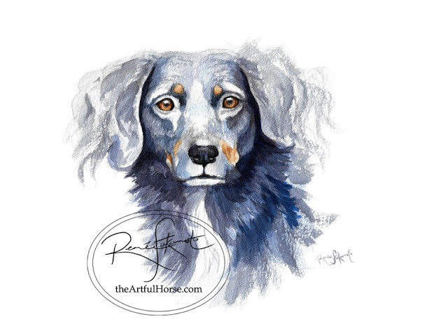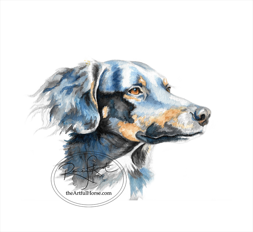 | Painting No. 1: My own sweet pup, a dog we fostered then adopted from a rescue organisation in Greece. Watercolour, 8x10, Copyright Renee Fukumoto |